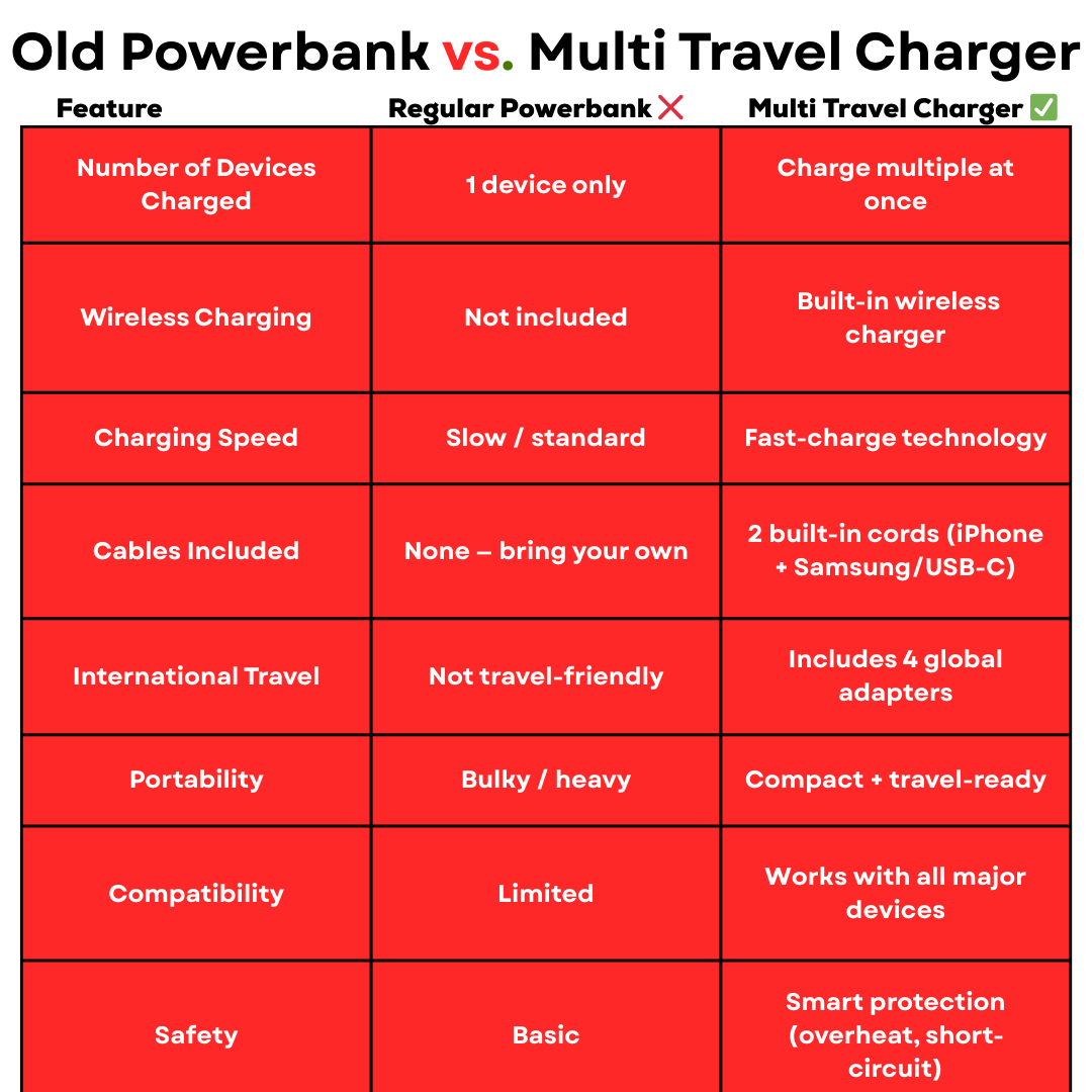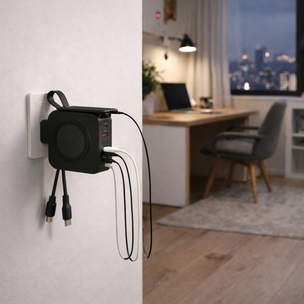 Ditch the cables and slow chargers. This all-in-one power solution lets you charge multiple devices at once — iPhone, Samsung, earbuds and more — with built-in cords, wireless charging, and fast-charge ports.